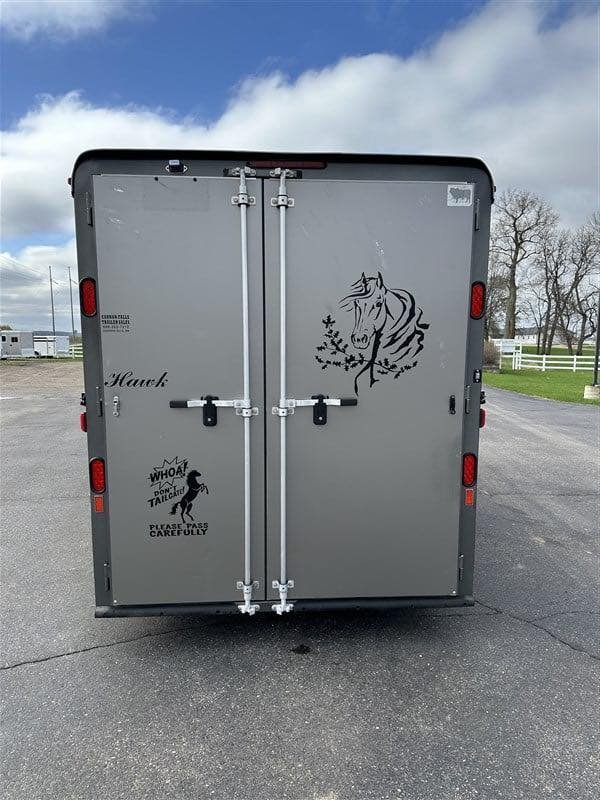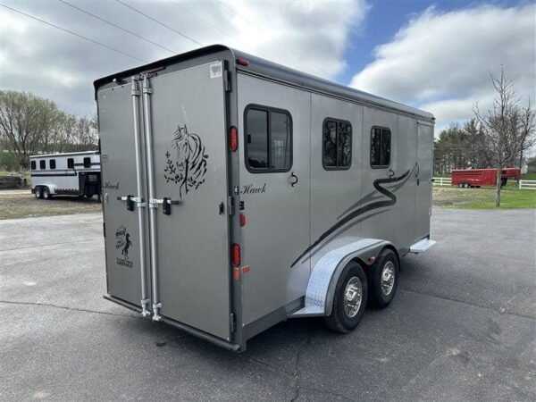 2013 Hawk — used 3-horse trailer with a horse layout and bumper pull hookup.