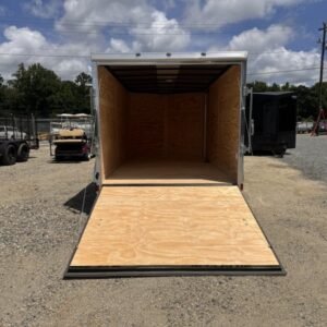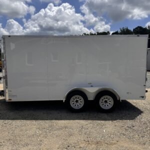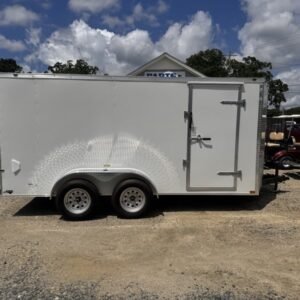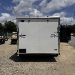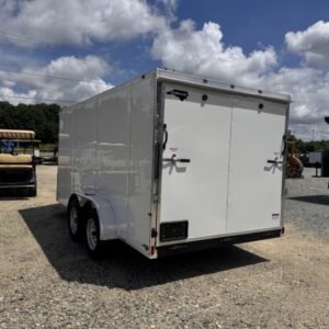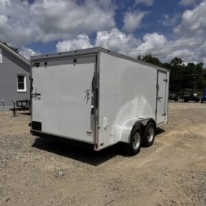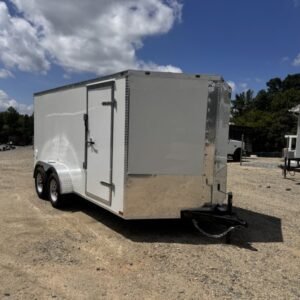 enclosed cargo trailer for secure transport and storage. Built with steel frame construction and 7K GVWR for professional use.