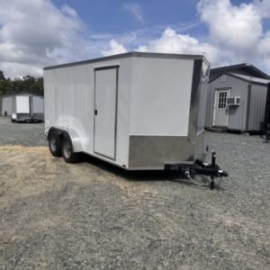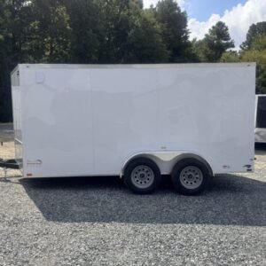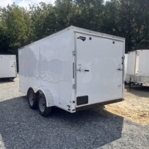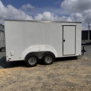 This enclosed trailer is designed for secure equipment transport, contractor tools, motorcycles, and mobile business applications. The reinforced steel frame and enclosed body protect your cargo from weather and road debris.