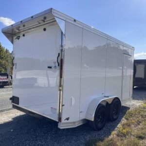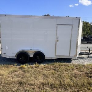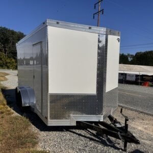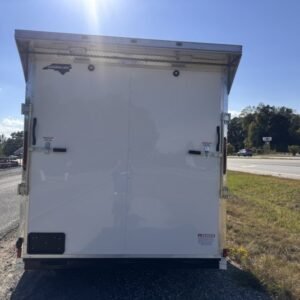 enclosed cargo trailer for secure transport and storage. Built with steel frame construction and 7K GVWR for professional use.