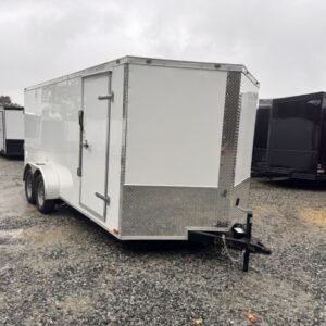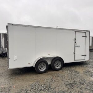 This enclosed trailer is designed for secure equipment transport, contractor tools, motorcycles, and mobile business applications. The reinforced steel frame and enclosed body protect your cargo from weather and road debris.