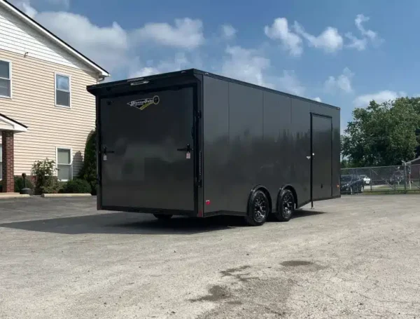 This enclosed trailer is designed for secure equipment transport, contractor tools, motorcycles, and mobile business applications. The reinforced steel frame and enclosed body protect your cargo from weather and road debris.