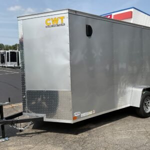 enclosed cargo trailer for secure transport and storage. Built with steel frame construction and durable hauling capacity for professional use.