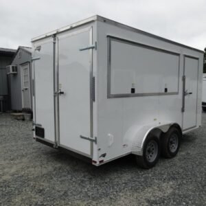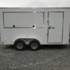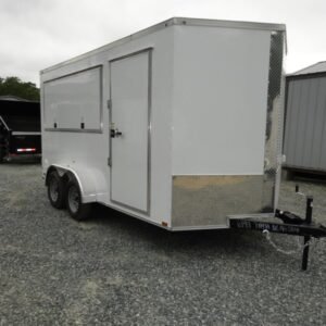 This enclosed trailer is designed for secure equipment transport, contractor tools, motorcycles, and mobile business applications. The reinforced steel frame and enclosed body protect your cargo from weather and road debris.