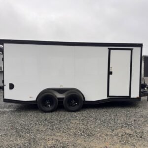 enclosed cargo trailer for secure transport and storage. Built with steel frame construction and durable hauling capacity for professional use.