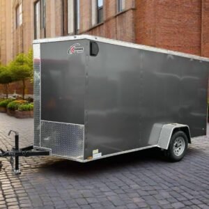 enclosed cargo trailer for secure transport and storage. Built with steel frame construction and durable hauling capacity for professional use.