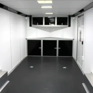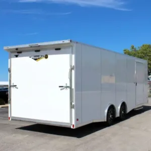enclosed cargo trailer for secure transport and storage. Built with steel frame construction and durable hauling capacity for professional use.
